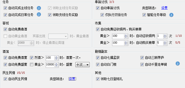這里注意,為了最合理的完成消耗100金的日常任務,默認使用黃金購買糧草。