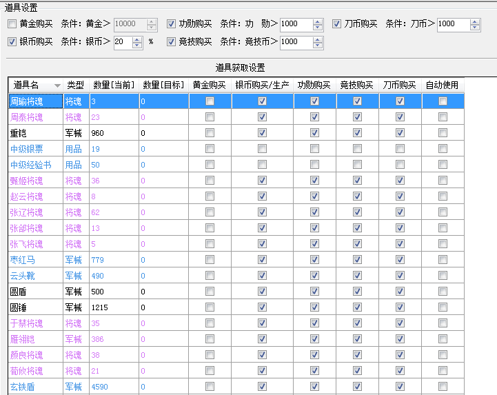這里需要注意,訓練武將在武將設置里選擇武將,生產軍械在道具設置里勾選。