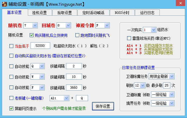聽雨閣七殺輔助是由聽雨閣網(wǎng)專為游戲《七殺》打造輔助工具。軟件的主要功能包括快速買藥,全自動任務,掛機刷精英(自動跑圖,掉線重新登錄,修理,回收),小號打裝備供應大號,自動喊話等,為你帶來最輕松的游戲體驗。