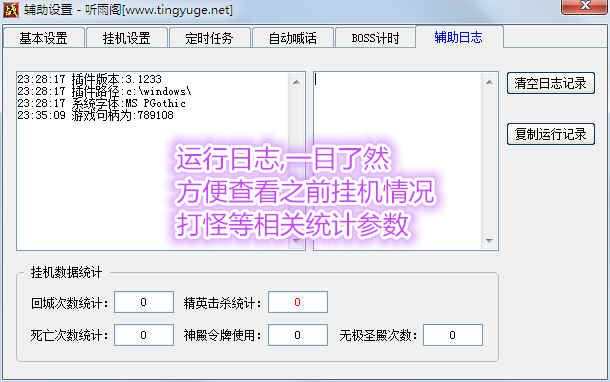聽雨閣戰(zhàn)天輔助是為4399頁游《戰(zhàn)天》打造的全能輔助工具。軟件功能強大,為玩家們提供掛機刷精英、裝備修理、快速買藥、自動任務(wù)等功能。該軟件刷BOSS非常好用,會自動提升BOSS刷新時間,別人都搶都搶不到。