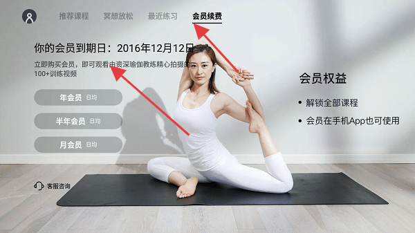4、開(kāi)通會(huì)員可解鎖全部課程,顯示會(huì)員到期日及不同時(shí)長(zhǎng)的會(huì)員套餐,還提供客服咨詢(xún)?nèi)肟凇?