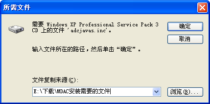 如果提示需要adcjavas.inc,handler.reg,sqlsoldb.chm等文件,請把目錄指向“MDAC安裝需要的文件”文件夾。