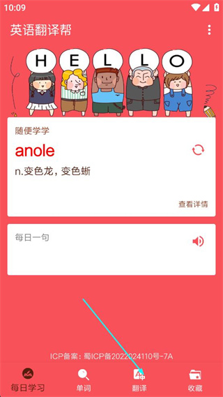 2、在主界面底部導(dǎo)航欄找到“翻譯”選項(xiàng),點(diǎn)擊該選項(xiàng)切換到翻譯功能頁(yè)面。
