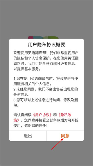 1、打開軟件后查看用戶隱私協(xié)議概要,點(diǎn)擊界面右下角的“同意”按鈕進(jìn)入主界面。
