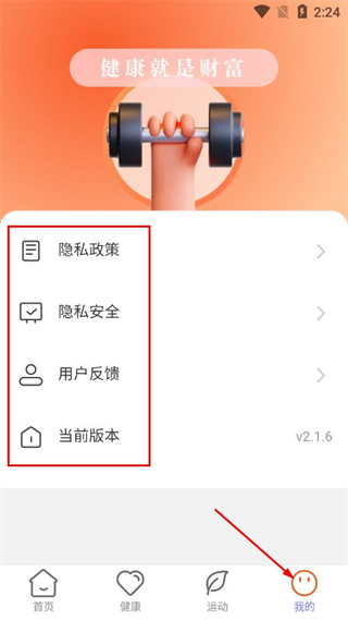 4、在我的頁面,可查看隱私政策、管理隱私安全、提交用戶反饋能看到當(dāng)前app版本。