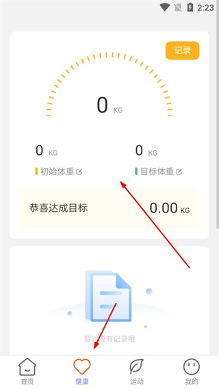 2、記錄初始體重、設(shè)置目標(biāo)體重,系統(tǒng)會跟蹤體重變化,達(dá)成目標(biāo)時會給出恭喜達(dá)成目標(biāo)的提示。