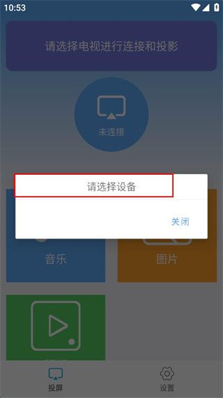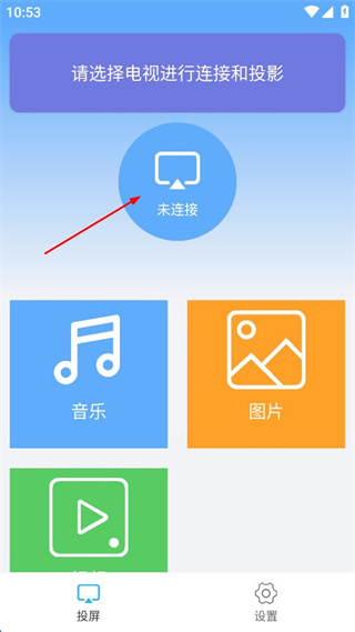 4、連接設(shè)備后,可在主界面選擇音樂圖片視頻等選項,進行對應(yīng)的投屏內(nèi)容操作。