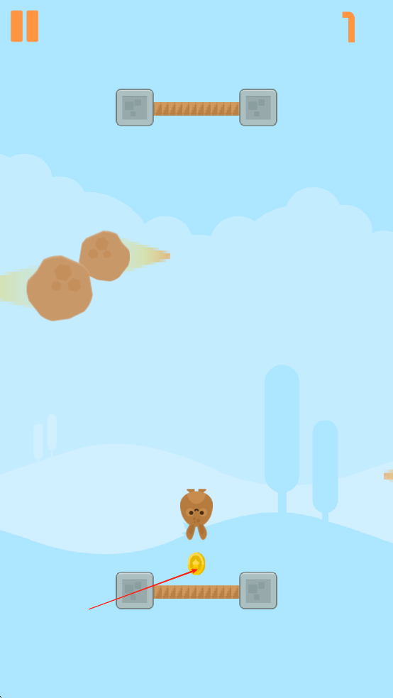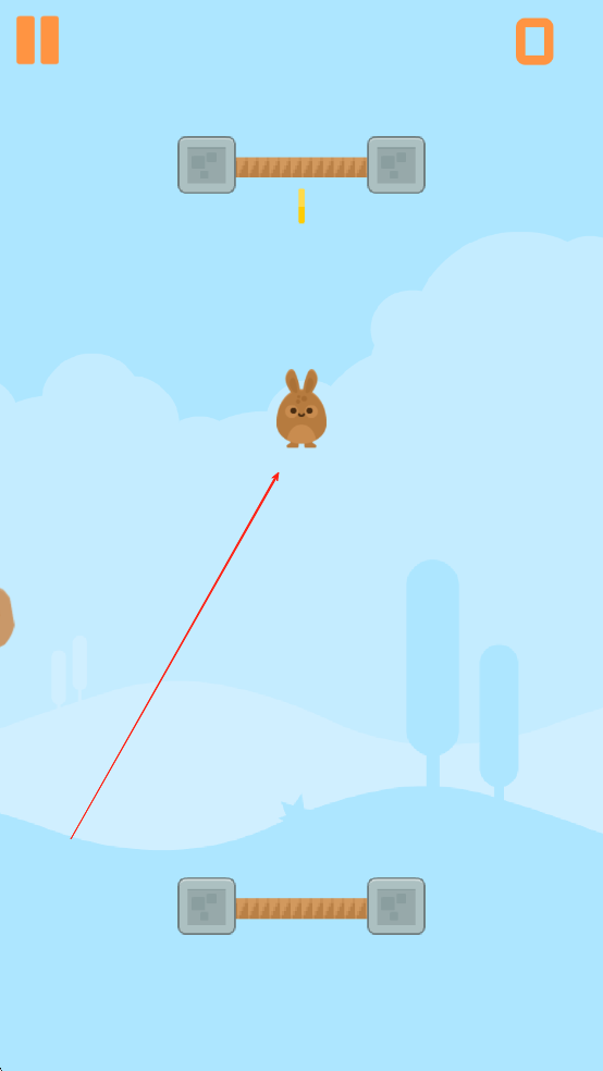 1、進入游戲后點擊屏幕控制小兔子跳躍,長按可調(diào)整跳躍力度,躲避前方尖刺陷阱與移動障礙。