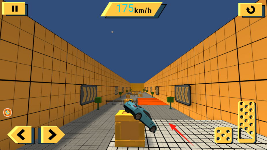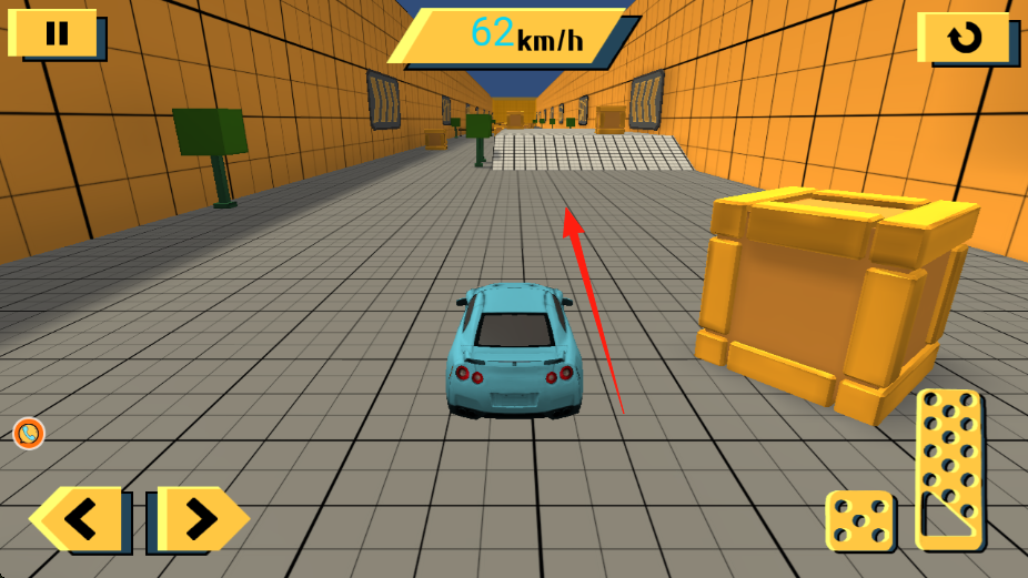 2、沿箭頭指引,駕駛賽車穿過方塊賽道,避開障礙,保持速度,沖向特技區(qū)域。
