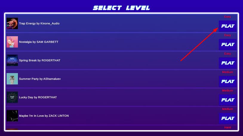 1、在SELECT LEVEL界面,選擇音樂關(guān)卡如Trap Energy等,點擊PLAY開始挑戰(zhàn)。