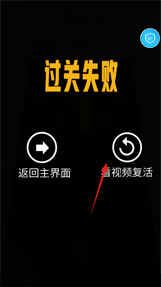 3、闖關(guān)失敗后,進(jìn)入結(jié)算界面,選擇看視頻復(fù)活,借助復(fù)活機(jī)制,重新挑戰(zhàn)關(guān)卡,通過操作,延續(xù)游戲進(jìn)程,感受失敗重試的互動,積累闖關(guān)經(jīng)驗。
