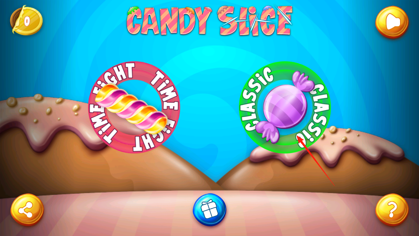 1、進(jìn)入游戲主界面,看到兩種模式選擇,點(diǎn)擊CLASSIC模式,開啟經(jīng)典挑戰(zhàn),借助模式選擇機(jī)制,進(jìn)入對(duì)應(yīng)玩法,通過操作,體驗(yàn)傳統(tǒng)切割樂趣,感受游戲基礎(chǔ)模式的互動(dòng)。