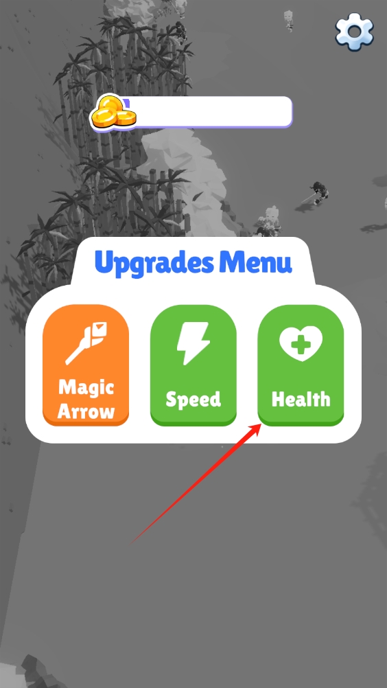 3、進(jìn)入升級(jí)菜單,優(yōu)先升級(jí)生命值和速度,增強(qiáng)角色生存和移動(dòng)能力,再升級(jí)魔法箭,提升攻擊力。