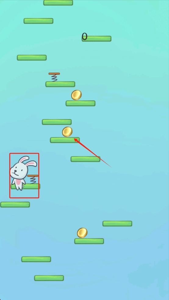 2、游玩的過程中觀察一下平臺(tái)間距與金幣位置,把握跳躍時(shí)機(jī),讓兔子精準(zhǔn)落在平臺(tái),持續(xù)向上攀升,避免墜落。