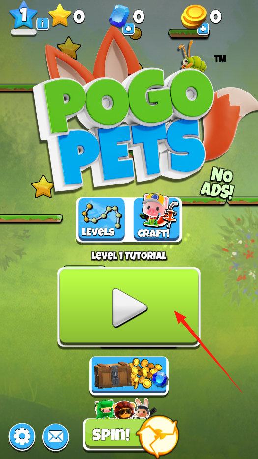 1、點(diǎn)擊綠色按鈕開啟教程關(guān)卡,進(jìn)入游戲,跟隨指引熟悉操作,開啟寵物跳躍冒險(xiǎn),體驗(yàn)新手引導(dǎo)機(jī)制。