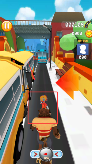 4、通過虛擬按鍵控制角色移動,在跑酷過程中躲避障礙并收集獎勵。