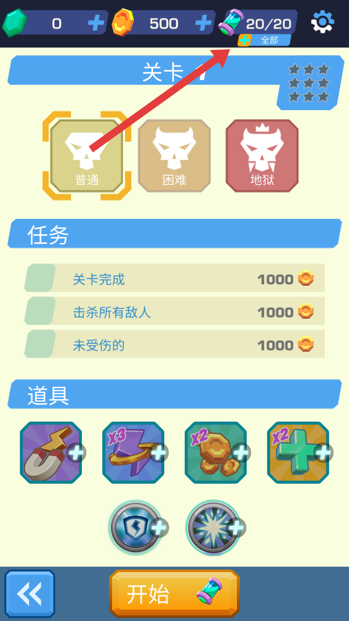 1、進(jìn)入關(guān)卡的界面,關(guān)注頂部體力的數(shù)量,先選擇普通的難度開(kāi)啟冒險(xiǎn),需要合理規(guī)劃自己的體力。