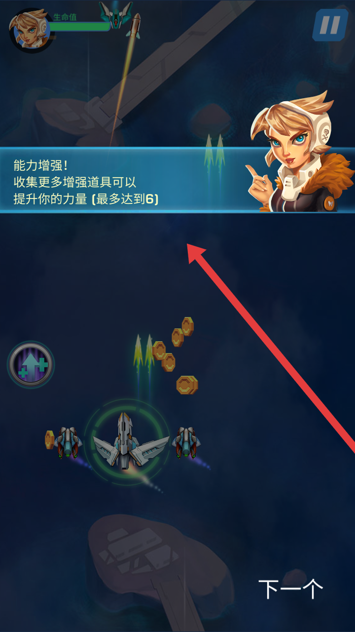 3、需要及時(shí)收集場(chǎng)景中的增強(qiáng)道具,提升戰(zhàn)機(jī)的力量最多達(dá)6級(jí),強(qiáng)化戰(zhàn)斗能力更好的應(yīng)對(duì)敵人。