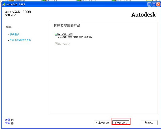 勾選“auto CAD 2008”點(diǎn)擊“下一步”繼續(xù) 如圖五。