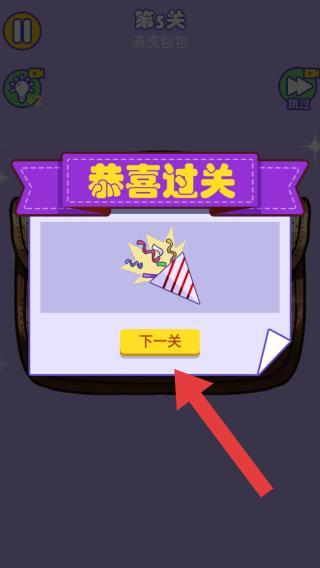 3、清潔成功通關(guān):每完成一件物品清洗,屏幕中央將出現(xiàn)恭喜過關(guān)提示,并可點擊下一關(guān)繼續(xù)挑戰(zhàn)。