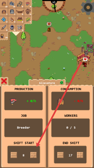 3、在農(nóng)場(chǎng)建筑的界面中,點(diǎn)擊SHIFT-START按鈕,啟動(dòng)養(yǎng)殖班次,讓工人開(kāi)始動(dòng)物養(yǎng)殖的生產(chǎn)工作。