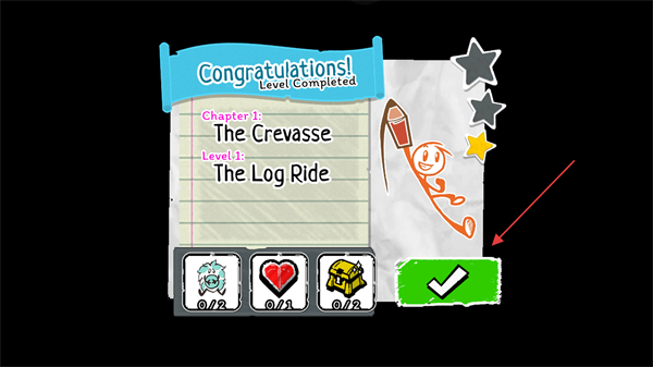 4、每個關卡會根據(jù)角色最后的生命值和獲取到的資源數(shù)量來進行評分,點擊綠色勾勾返回主頁。