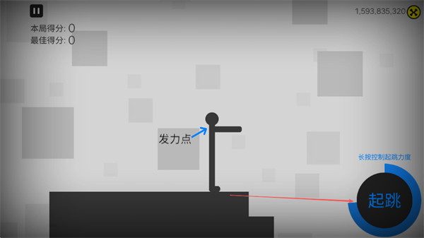 1、長(zhǎng)按起跳按鈕控制起跳力度,找準(zhǔn)發(fā)力點(diǎn)讓火柴人起跳。