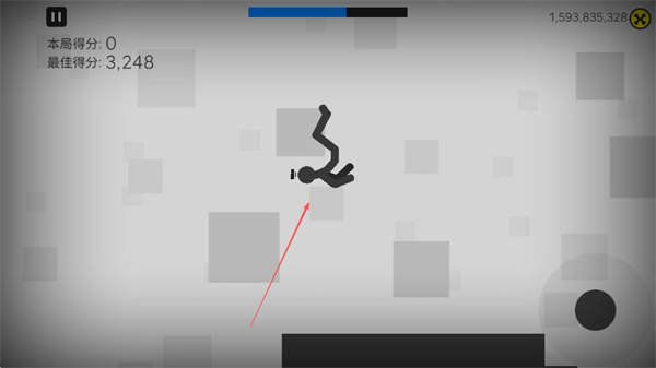 2、火柴人起跳后會(huì)在空中翻轉(zhuǎn)、移動(dòng),過程中會(huì)積累得分。