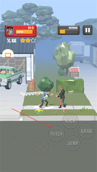 3、遇到新敵人GEORGE時(shí),點(diǎn)擊PUNCH按鈕發(fā)起攻擊,持續(xù)輸出傷害。