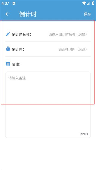 2、在倒計時頁面填寫倒計時信息的內容,并補充備注信息。