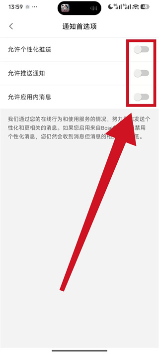 4、在通知首選項頁面,可根據(jù)需求開啟相關(guān)設(shè)置。