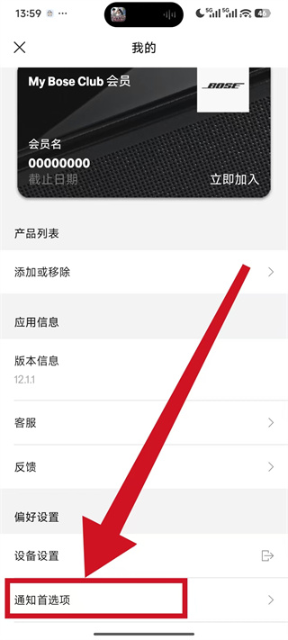 3、在我的頁面中,找到并點(diǎn)擊通知首選項,進(jìn)入通知設(shè)置頁面。