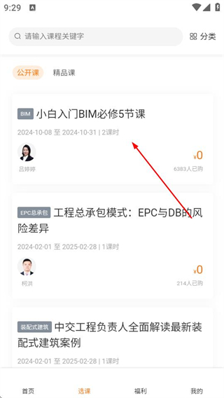 2、在選課頁面,點擊目標課程,進入課程詳情頁。