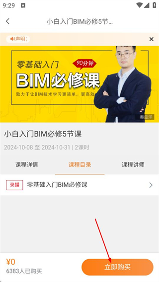 3、在課程詳情頁,點擊立即購買按鈕,進入手機號登錄頁面。