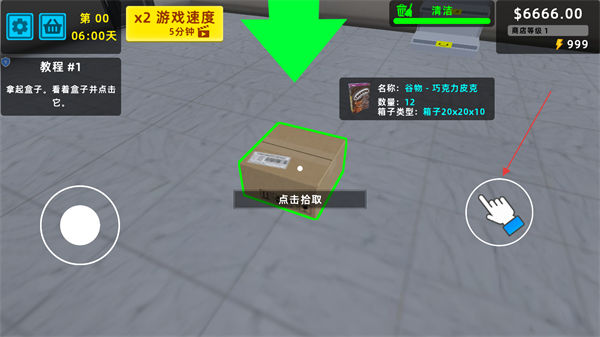 1、找到貨架旁的商品箱子,點擊拾取按鈕,將箱子中的商品收入操作欄,為后續(xù)上架做準備。