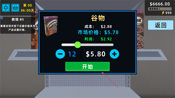 4、選中貨架上的商品,在彈出的價格設置界面,通過+/-調整售價,確認后點擊開始完成定價。