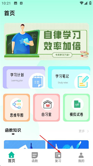 1、在學(xué)生圖形計算器首頁,點擊底部的復(fù)習(xí)選項,進(jìn)入復(fù)習(xí)頁面。