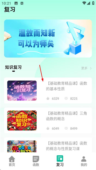 2、在復(fù)習(xí)頁面,點擊目標(biāo)課程,進(jìn)入課程詳情頁。
