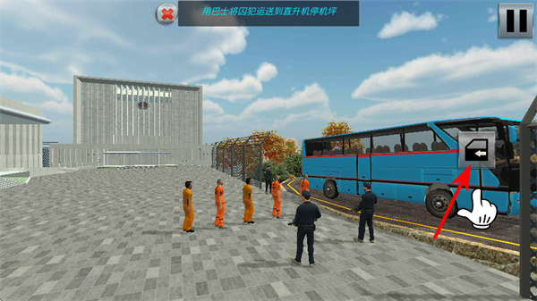 2、操作巴士完成角色裝載,這是推進(jìn)任務(wù)的基礎(chǔ)操作,裝載后可讓囚犯進(jìn)入巴士,為后續(xù)的運(yùn)輸流程做好準(zhǔn)備。