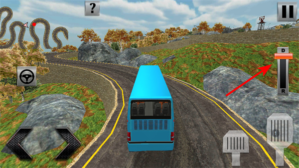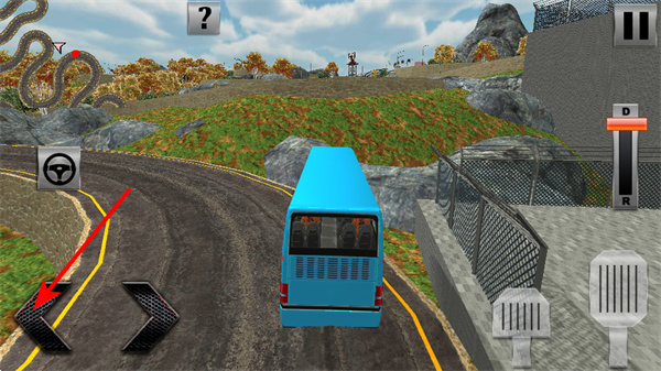 3、操控方向按鈕調(diào)整巴士行駛路線,這是保障運(yùn)輸安全的核心操作,調(diào)整后可讓巴士沿道路軌跡行進(jìn),避開山路場(chǎng)景中的障礙區(qū)域。