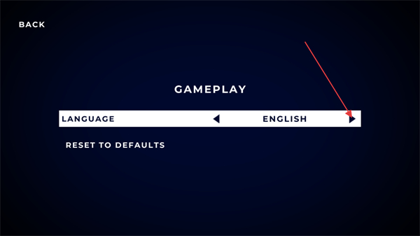 3、該界面是GAMEPLAY設(shè)置頁,當(dāng)前語言為ENGLISH,點擊語言欄右側(cè)的箭頭按鈕,可切換游戲的顯示語言。