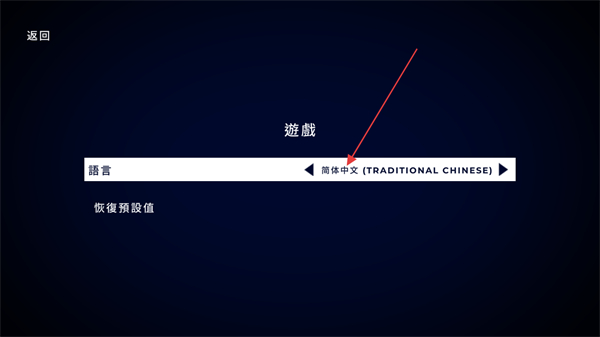 4、此界面顯示語言已切換為簡體中文,完成語言設(shè)置后,可返回上一級界面,應(yīng)用該語言配置進(jìn)行游戲。