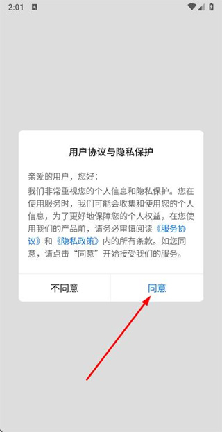 1、在使用協(xié)議隱私政策彈窗中點(diǎn)擊同意按鈕,進(jìn)入登錄頁面。