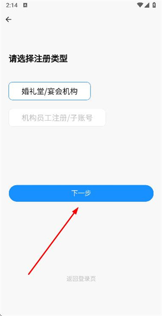 1、在登錄頁(yè)面點(diǎn)擊注冊(cè)選項(xiàng),進(jìn)入注冊(cè)類型選擇頁(yè)面。