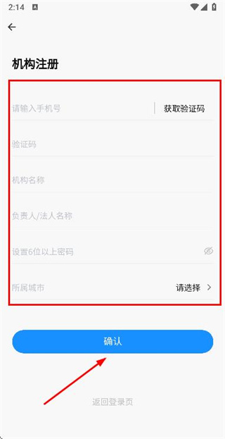 3、在機(jī)構(gòu)注冊(cè)頁(yè)面填寫對(duì)應(yīng)信息后,點(diǎn)擊確認(rèn)完成注冊(cè)操作。