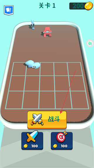 1、在關(guān)卡1界面點(diǎn)擊戰(zhàn)斗按鈕,觸發(fā)與紅色敵人的戰(zhàn)斗,推進(jìn)關(guān)卡進(jìn)程。