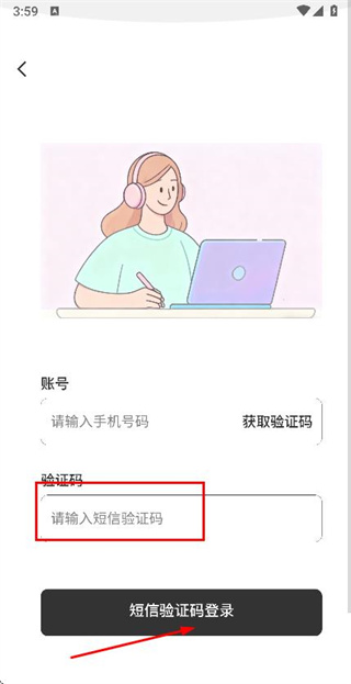 3、在驗(yàn)證碼輸入框中填寫收到的驗(yàn)證碼,點(diǎn)擊短信驗(yàn)證碼登錄完成賬號的登錄操作。