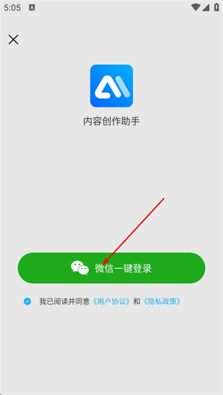 3、在登錄頁面,點擊微信一鍵登錄,完成內(nèi)容創(chuàng)作助手的賬號登錄。