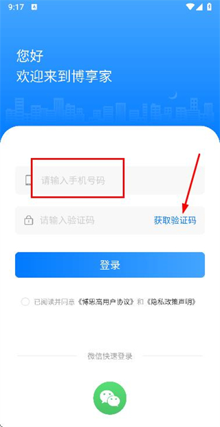 2、在手機登錄頁面填寫手機號,勾選協(xié)議后,點擊獲取驗證碼。