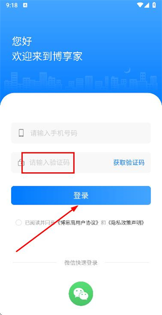 3、在驗證碼輸入框中填寫收到的驗證碼,點擊登錄完成賬號的登錄操作。